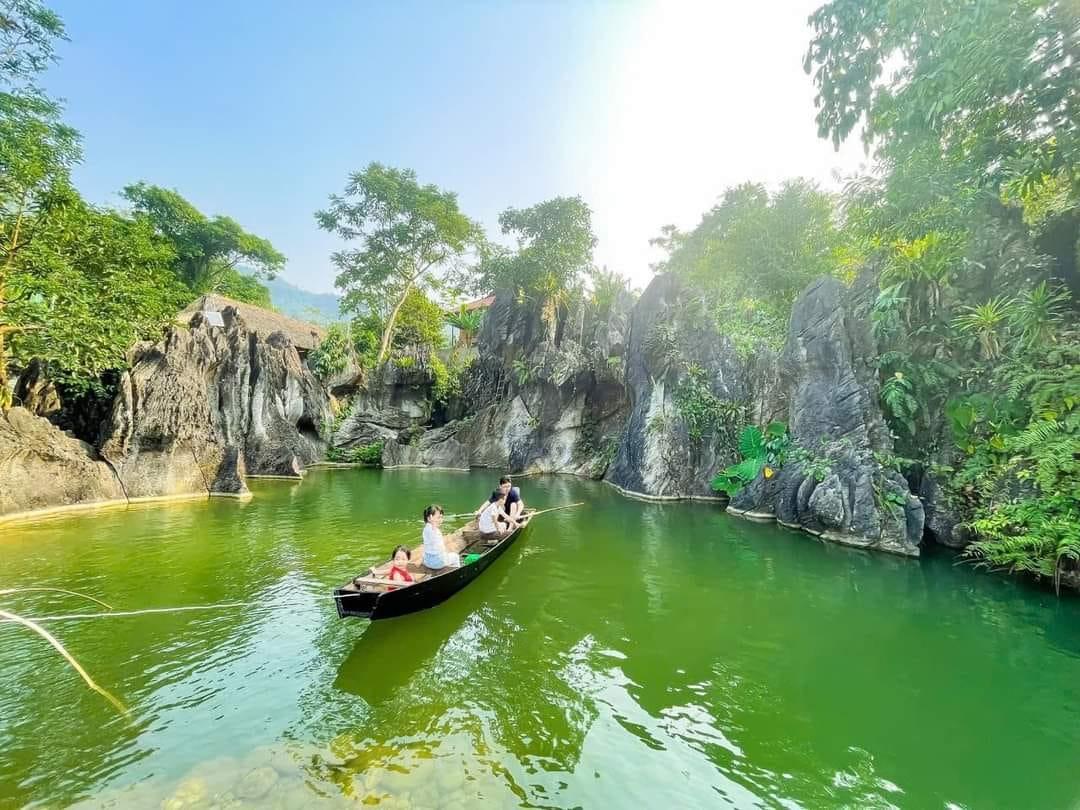 Đầy đủ tất cả cảnh quan, hồ nước, thác nước, nhà sàn, chòi,...